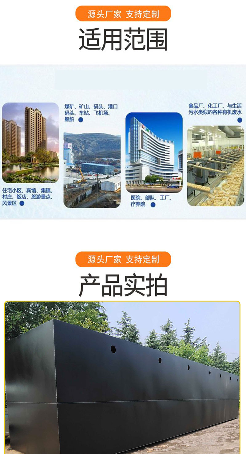一体化污水处理设备具有以下特点:1. 可以埋入地下2. 污泥产生量少3. 对周围环境无影响4. 全自动控制,不需要人员管理5. 操作简单,维修方便6. 工艺新颖,效果良好7. 使用寿命长。地埋式污水处理设备规格从每小时0.5m³至20 m³等,箱体采用钢板制做,表面采用环氧煤沥青防腐,使用寿命一般可达15年以上。 -